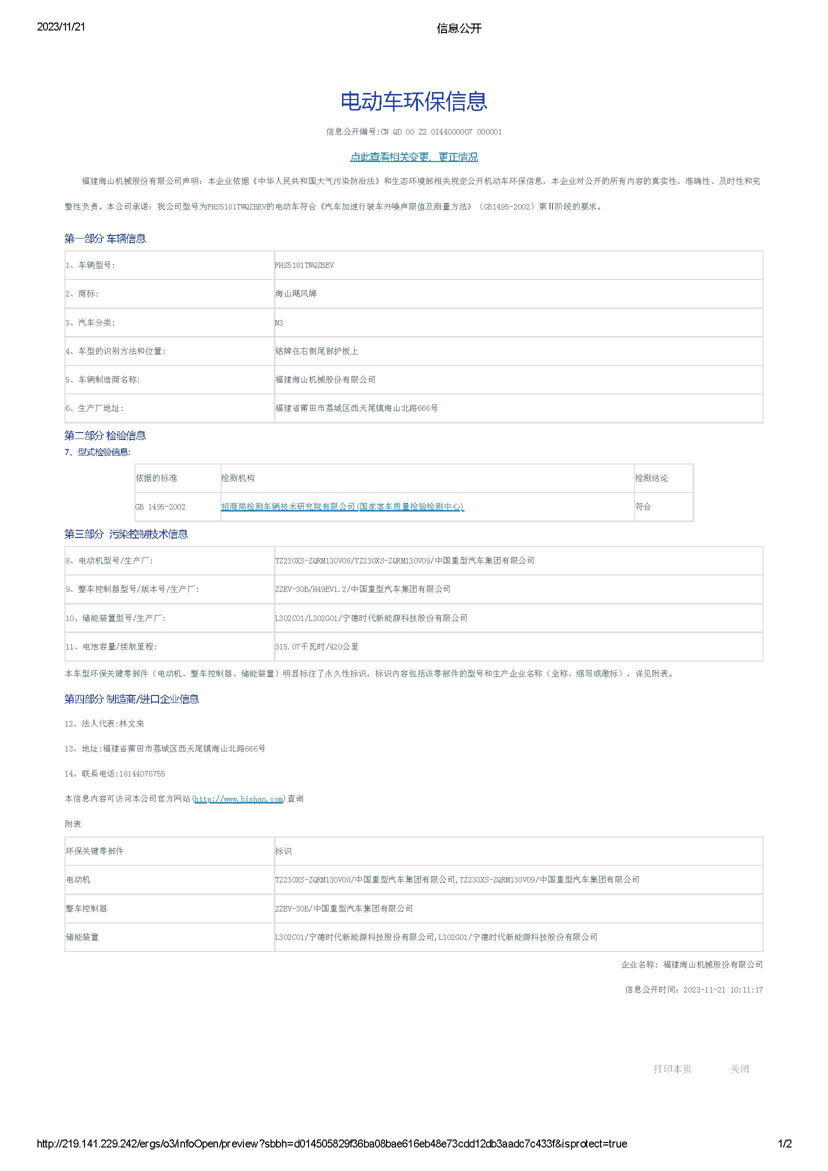 | 整車尺寸(長×寬×高)(mm) | 7545×2300×2840 |