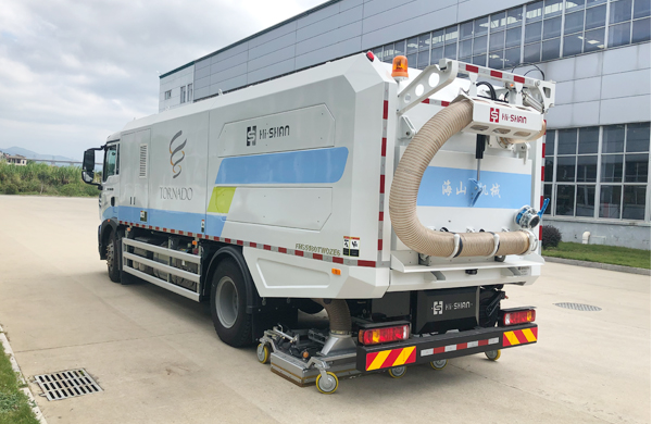 ? 一機多能:具備深度清潔、應急快速清潔工作模式;尾部可選配臂架抽吸裝置,可聯(lián)接抽吸軟管,進行砂石、土壤、水等物料的快速抽吸作業(yè);可選配手持式清洗器,用于人行道的深度清潔;