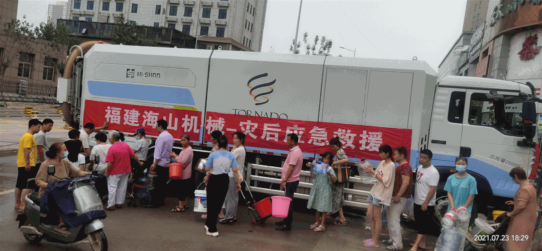 災(zāi)情就是命令,搶險就是責(zé)任。在災(zāi)難發(fā)生之后,海山機(jī)械立即成立應(yīng)急救援小組,組員驅(qū)車數(shù)千里之遙,晝夜兼程,第一批5臺道路污染清除車終于在7月22日早晨趕到了災(zāi)區(qū)鄭州。顧不上舟車勞頓的疲憊,一到達(dá)災(zāi)區(qū),救援小組的成員們就馬上投入了救援工作。救援車輛作業(yè)過的地方,路面淤泥完全被清除,道路恢復(fù)暢通。
